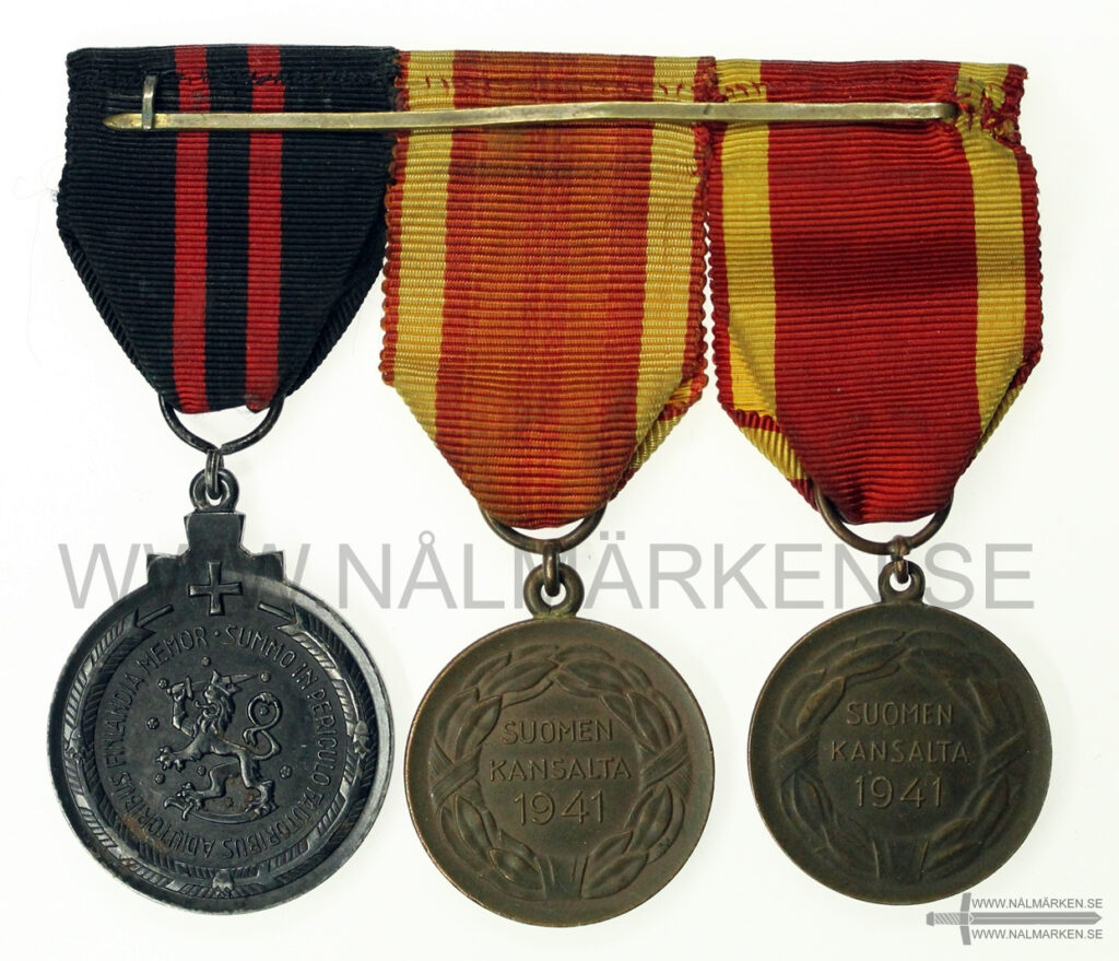 En medaljribba till en utländsk frivillig som stred i finska Vinterkriget bestående av: